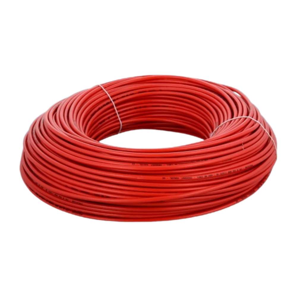 Its heavy-duty PVC insulation provides strong protection against heat, moisture, abrasion, and electrical leakage, making it ideal for both concealed and surface wiring. The red colour is commonly used for phase/live connections, allowing easy identification and safer electrical installations.