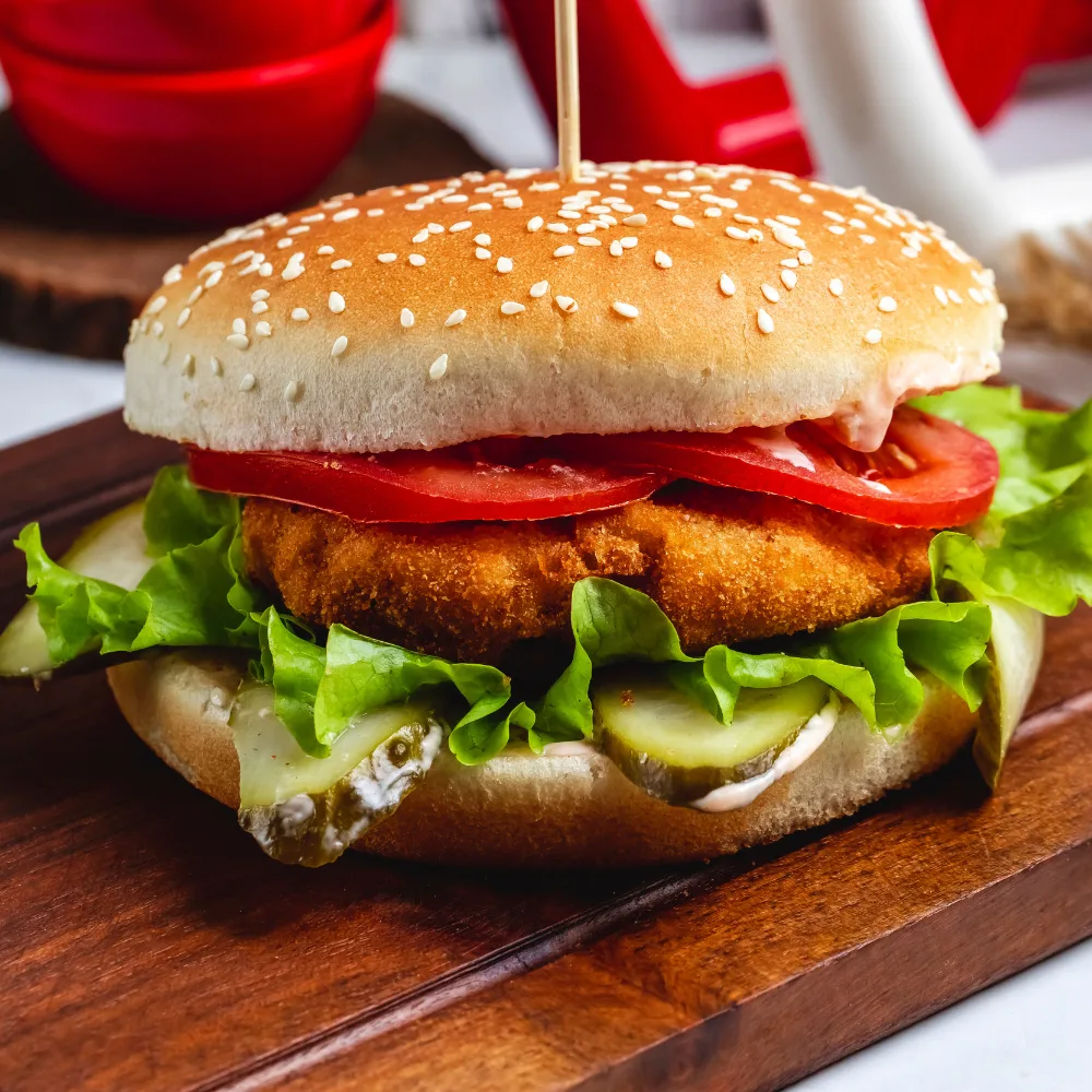 Our Veg Burger is a delicious classic made with a crispy golden veg patty, layered with fresh lettuce, juicy tomatoes, crunchy pickles, and creamy signature sauce, all tucked inside a soft sesame bun. Perfectly balanced in taste and texture, this burger delivers a satisfying bite every time.